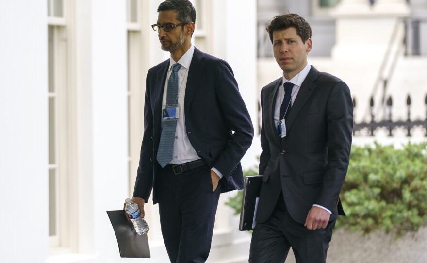 Sundar Pichai y Sam Altman, directores de Google y OpenAI respectivamente.