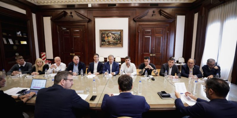 El encuentro se desarrolló en el Salón de los Acuerdos de Casa de Gobierno y reunió a jefes comunales del peronismo, la UCR y del espacio PRO-libertario, en una imagen de amplitud política en medio de las dificultades financieras que atraviesan los distritos.
